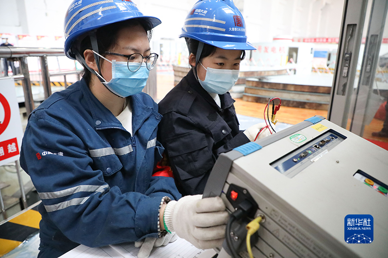 2月12日,在甘肅省隴南市文縣,大唐苗家壩水電站工作人員在進行設備檢修。新華社記者 馬希平 攝