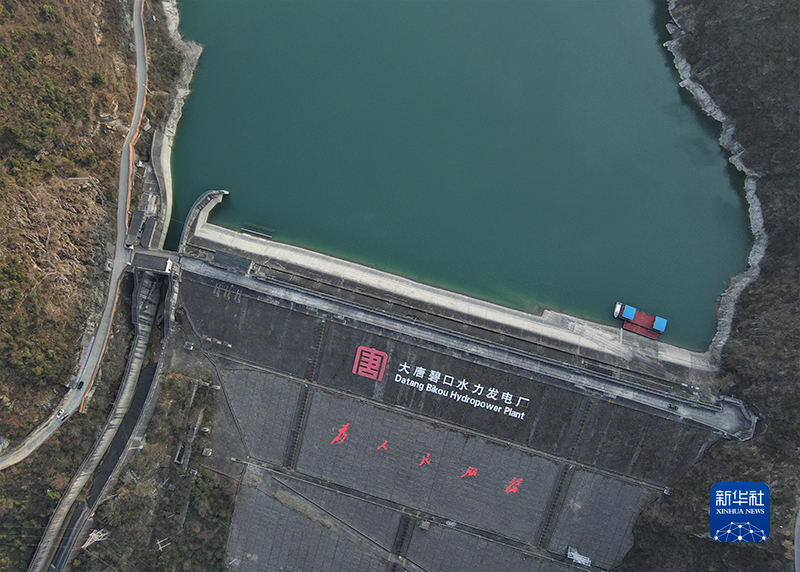 這是2月11日在甘肅省隴南市文縣碧口鎮拍攝的大唐碧口水電站庫區景色(無人機照片)。新華社記者 馬希平 攝
