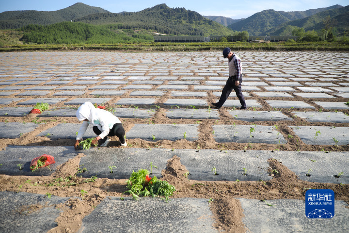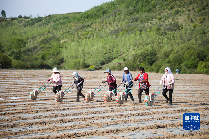 5月23日,渭源縣田家河鄉元古堆村的村民在點播百日草種子。新華社記者 馬希平 攝