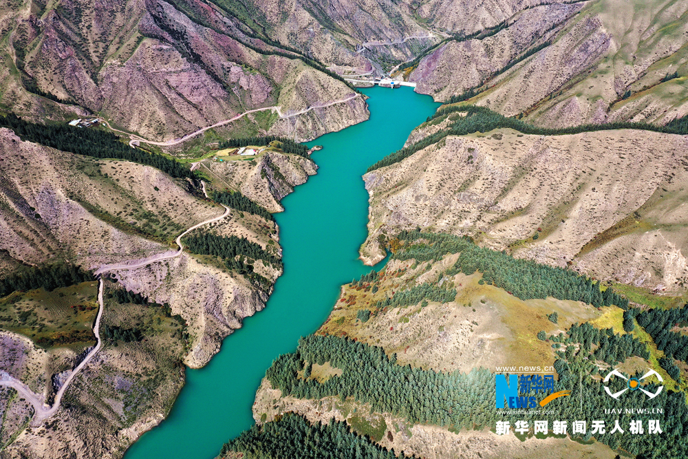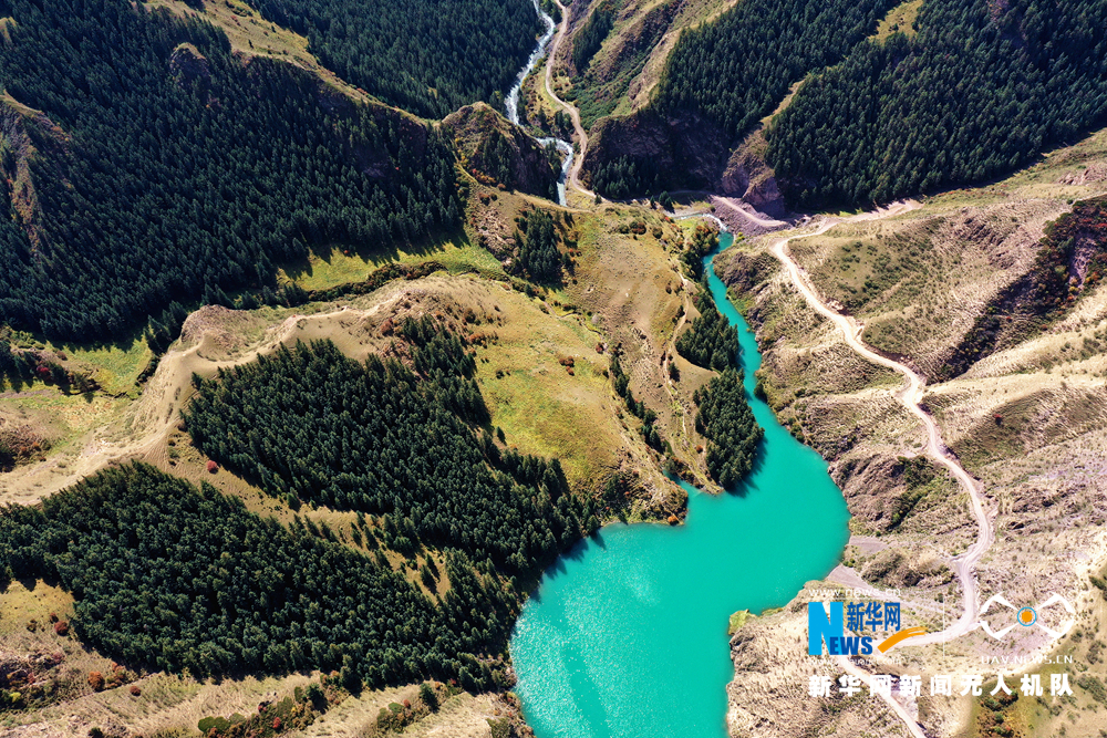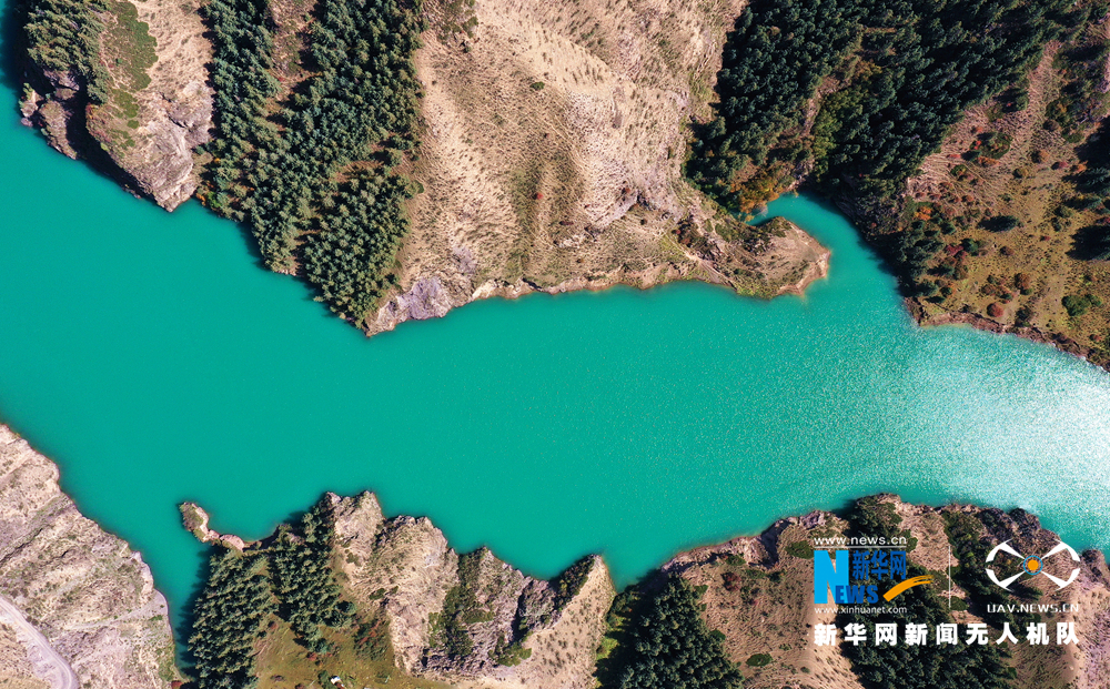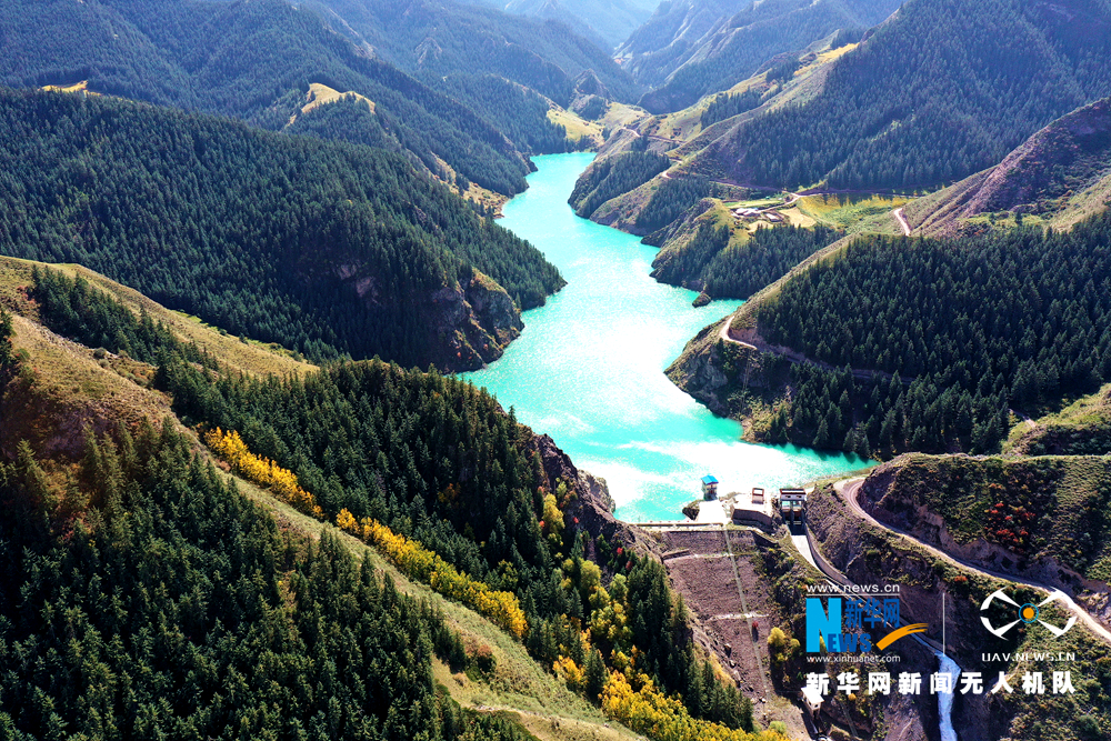 近日,位於甘肅省張掖市肅南裕固族自治縣馬蹄藏族鄉的酥油口一帶風光旖旎、秋色斑斕。酥油口水庫艷麗的湖藍色配上青松的墨綠,河流的剔透,美不勝收。新華網發(吳生文 攝)