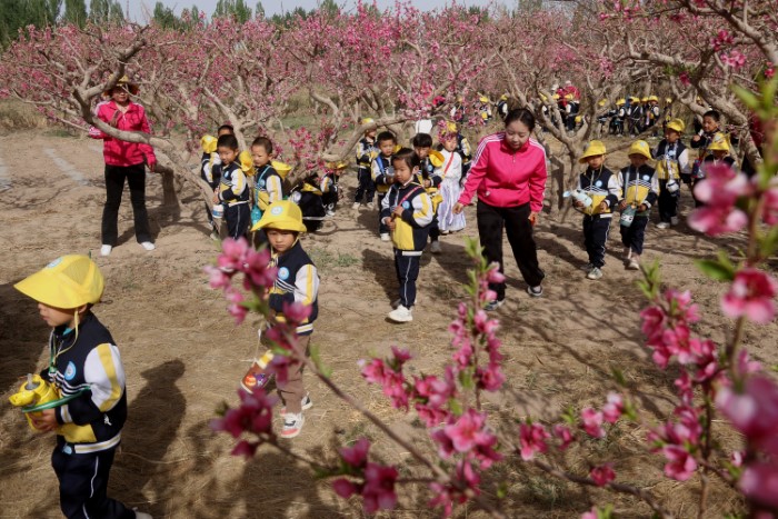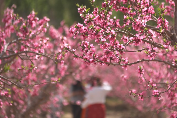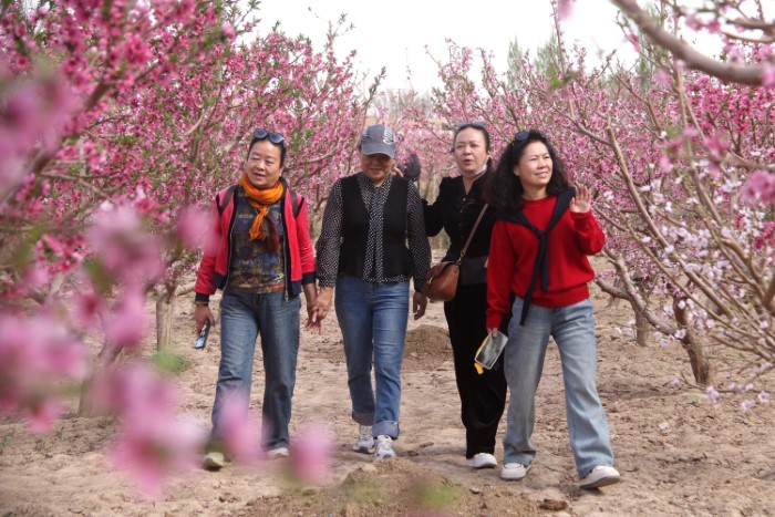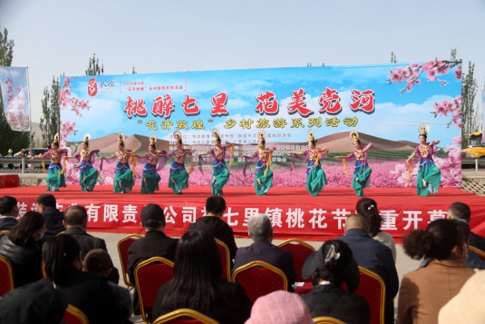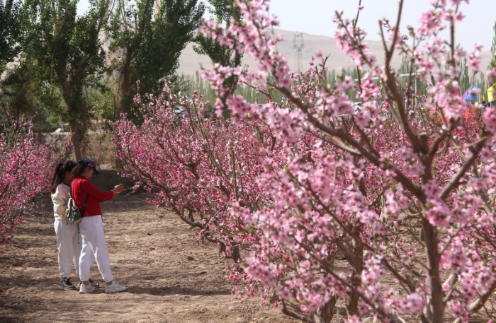 近日,位於甘肅省敦煌市鳴沙山下七里鎮的6000畝桃花競相綻放,正值最佳賞花期,吸引游客踏青賞花。4月18日,七里鎮在本鎮桃産業實驗示範基地舉辦“桃醉七里 花美黨河”--“花開敦煌”鄉村旅游系列活動,以花為媒,以節會客、以桃興業、以旅興農,進一步提升敦煌紫胭桃品牌影響力和美譽度,促進特色林果産業和鄉村旅游深度融合發展。(張曉亮 張文瑾 湯童)