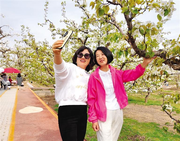 “我來自寧夏銀川,聽朋友説什川梨花開了,就約朋友一起來了。這個梨園是真大,有好看的、好玩的、好吃的,到這兒打卡一點兒都不後悔。”游客白浪萍説。