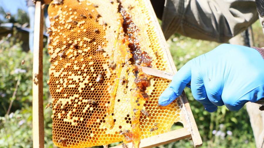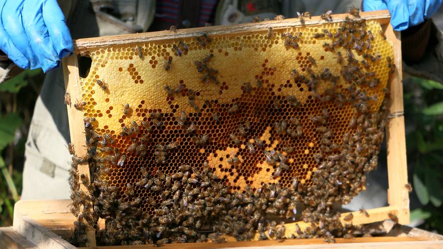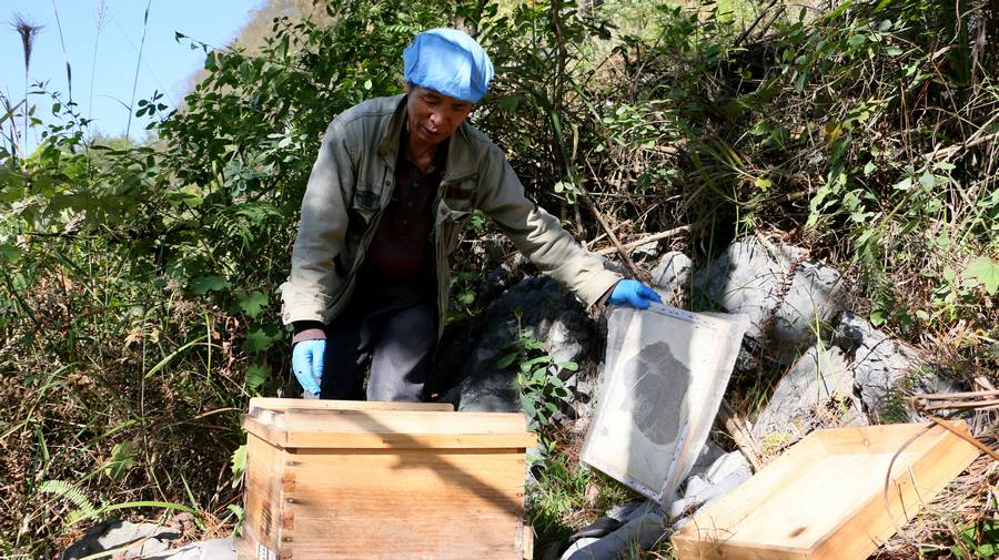 眼下,正是冬蜜采收的好時節,在廣西河池市南丹縣八圩瑤族鄉老圩場村蜜蜂養殖場,一個個蜂箱錯落有致地鑲嵌在山野裏,成群的蜜蜂來回穿梭飛舞,忙着釀製獨有的甜蜜。