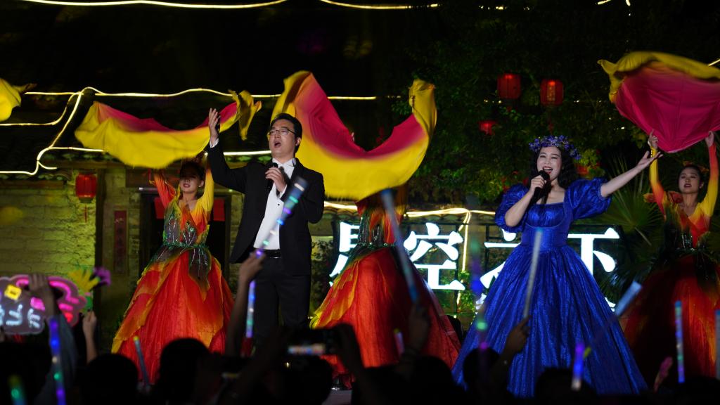 耳邊是動聽的旋律,抬頭是繁星點點,周圍是掩映在絢麗燈光下的秀美村莊。音樂會除了突出鄉村特色,還突出本土特色,參演者除了來自四川音樂學院的王珠峰和來自中國傳媒大學的鐘實,其他都是來自玉林、北流,其中有知名歌手李丹鳳、李峪釗、青年藝術家陳星州等,還有文化館東門口音樂社等文藝團體,而他們表演的節目又有不少是歌唱家鄉、思念故土、展示地方文化的本地原創節目。(來源:北流市委宣傳部)