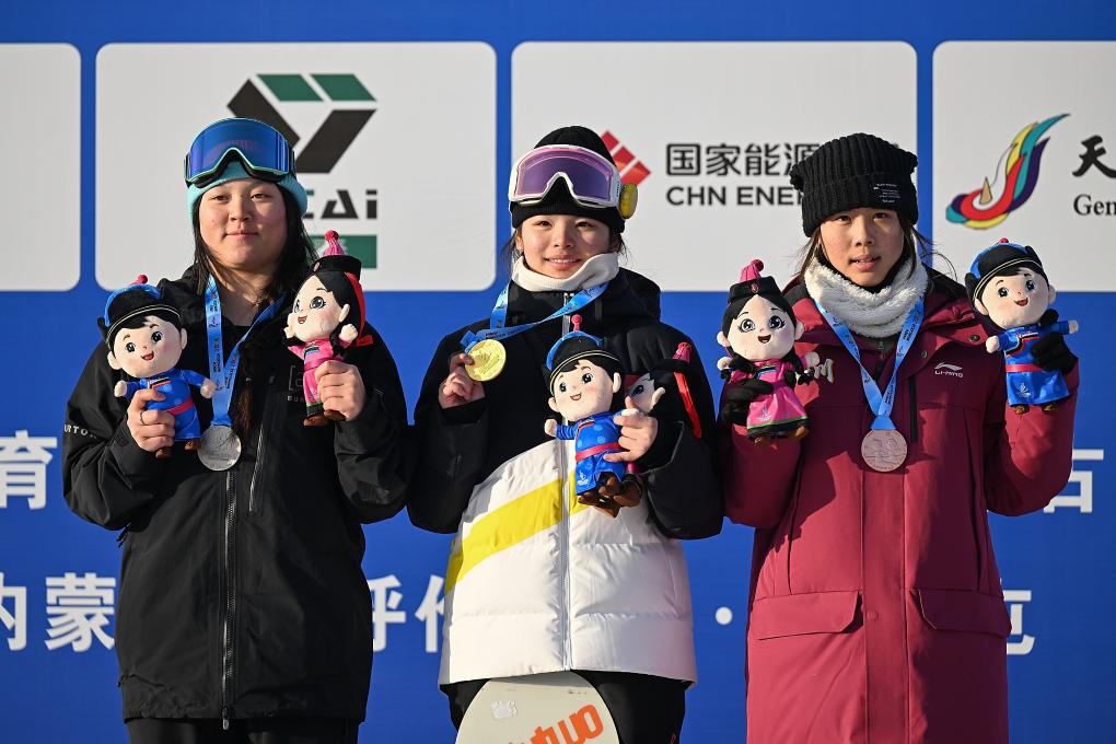 當日,第十四屆全國冬季運動會單板滑雪公開組女子大跳&決賽在內蒙古呼倫貝爾市扎蘭屯金龍山滑雪場舉行。
