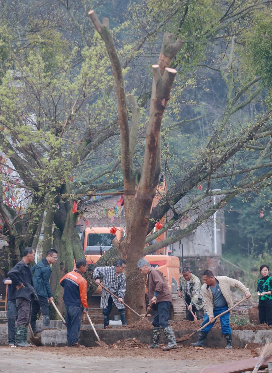 活動當天,村民和志願者在村屯周邊種下500多株香樟、榕樹、桂花、桃花、三角梅等樹種,不僅美化了六元屯人居環境,也為村裏發展鄉村旅游打下基礎。(湯曉逵)
