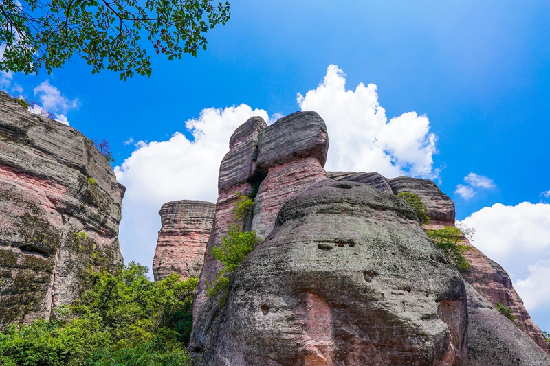 八角寨景觀資源天賦異稟,地質地貌鬼斧神工,其中以群螺觀天、龍脊天梯、凌淵谷、鯨魚鬧海等為絕勝,集黃山之奇、華山之險、桂林之秀於一身,是登山瞰丹霞風光的好去處。