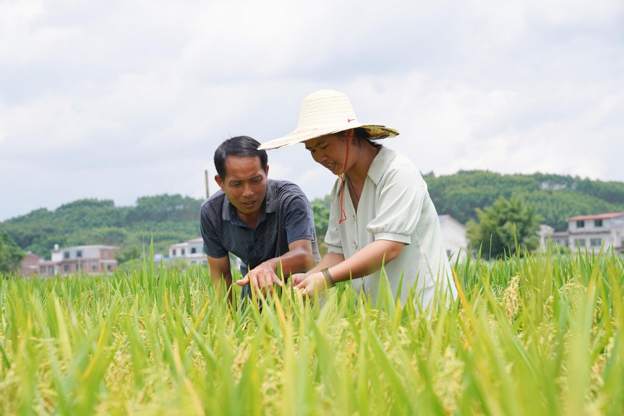 眼下,正處於水稻灌漿關鍵期。廣西柳州市柳城縣六塘鎮農業農村服務中心的農技人員到六塘鎮拉燕村大潘屯,查看天氣對水稻灌漿的影響,同時指導農戶做好防倒伏措施。