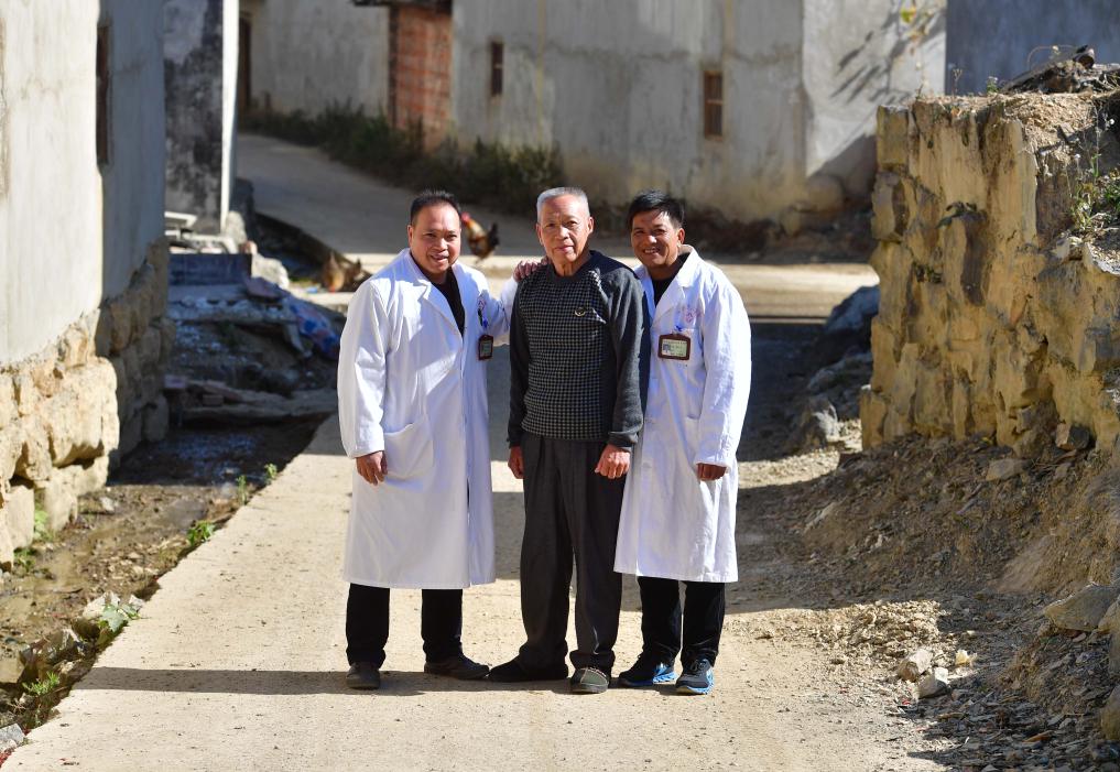 在鹿寨縣四排鎮江南村,覃家父子堅守鄉村衞生室近60年,守護着一方百姓健康。今年76歲的覃紹文從1967年開始擔任江南村的村醫,一直幹到2013年退休。