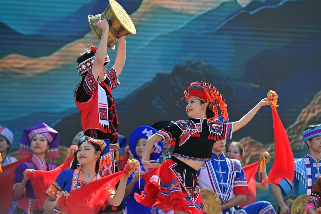 11月12日,在梧州市政廣場,演員在表演民族歌舞。