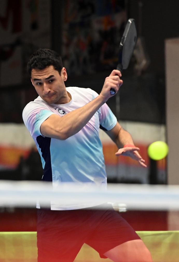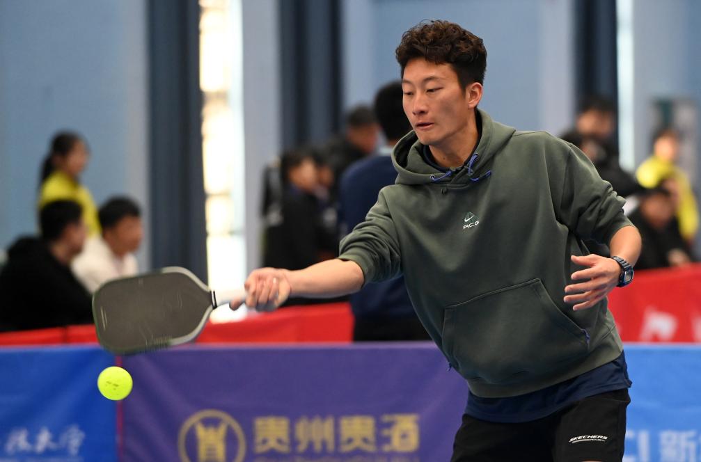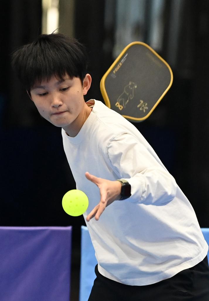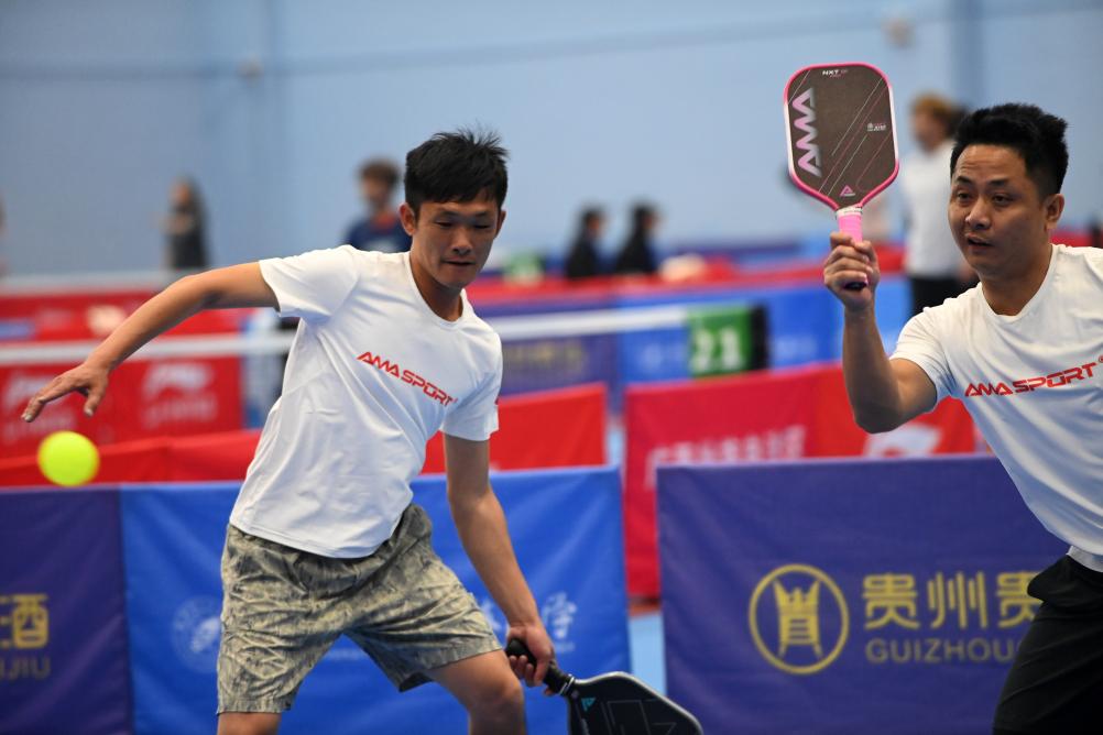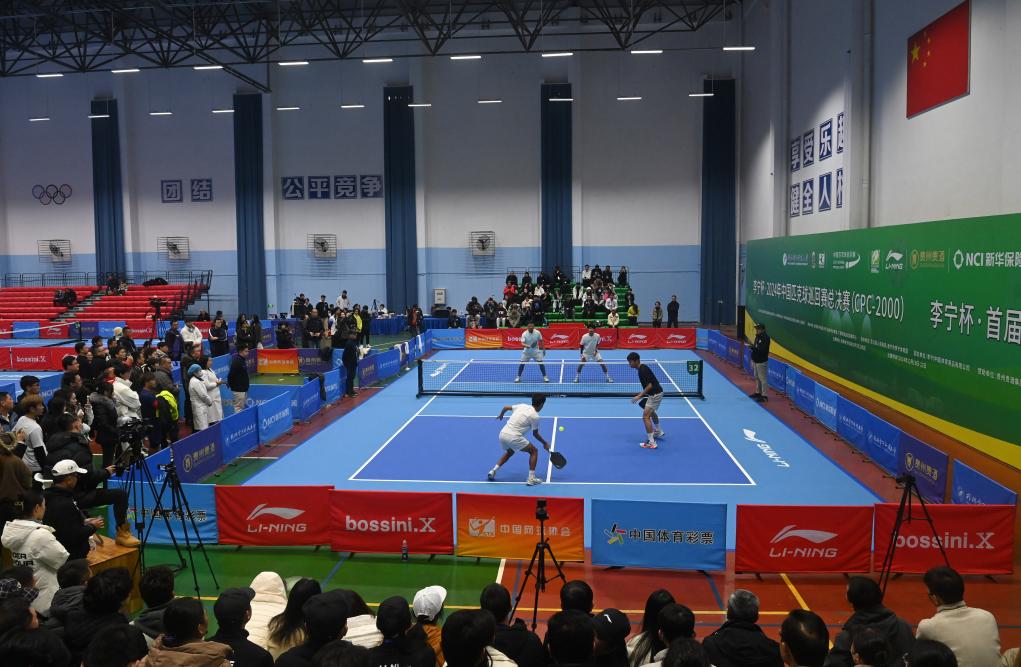 12月20日,在廣西桂林電子科技大學球類館,匹克球賽選手在比賽中。