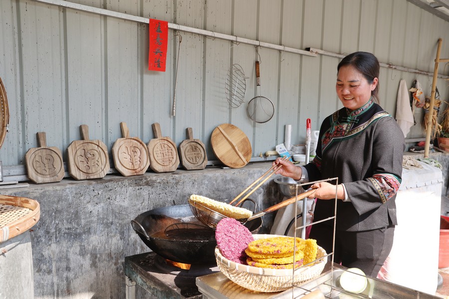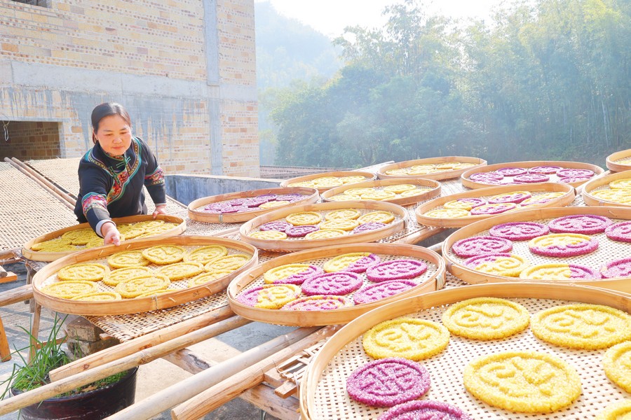 過了臘八就是年,趁着晴好的冬日,廣西玉林玉州區大塘鎮大雙村村民在製作白糤,據記載,玉林白糤的製作歷史有數百年,是當地招呼賓客不可或缺的傳統美食,其形態如圓盤,上面印有“福、祿、壽、喜”等吉祥喜慶字樣,既美味又富有美好的寓意。(劉丹萍 覃小原)