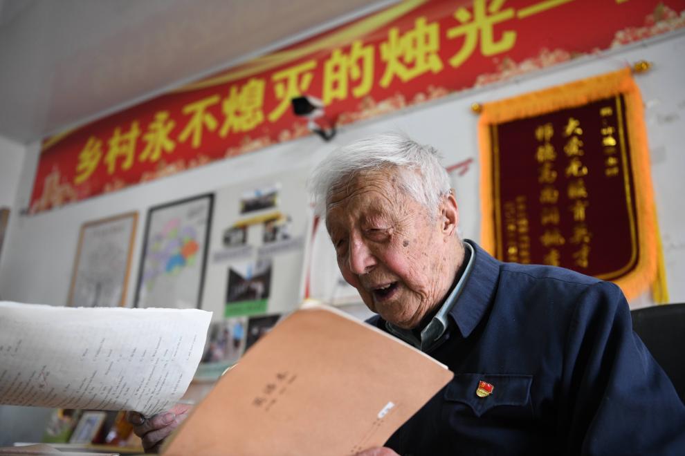安徽馬鞍山卜陳村的午後,陽光和煦。三尺舊講&上,97歲的葉連平正在給學生們上課。