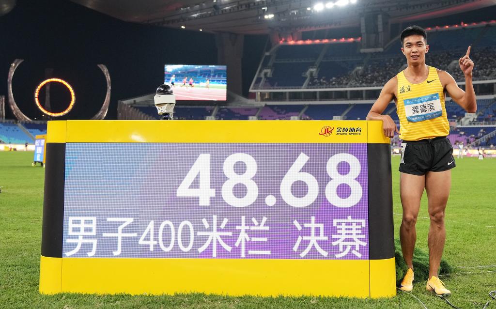 男子400米欄比賽中,龔德濱跑出48秒68,創造全國紀錄。原紀錄保持者、河南隊選手謝智宇獲得銀牌。