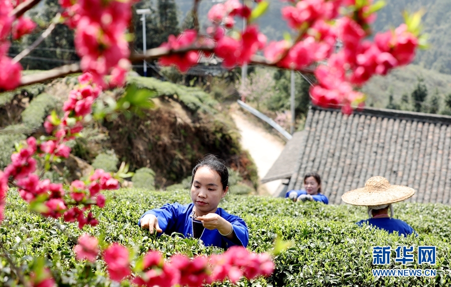 在三江侗族自治縣八江鎮歸令村六更屯,侗族婦女們在採茶。