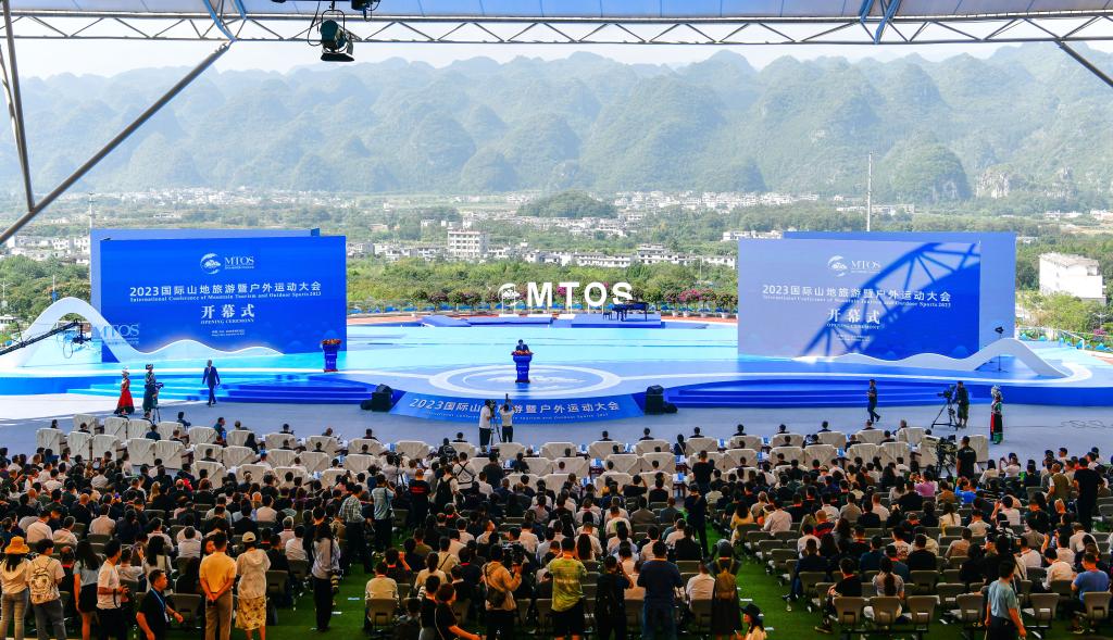 當日,2023國際山地旅游暨戶外運動大會開幕式在貴州省黔西南布依族苗族自治州興義市舉行。大會舉辦2023萬峰林半程馬拉松賽、國際高橋極限運動邀請賽、全國軟式棒壘球錦標賽等活動。