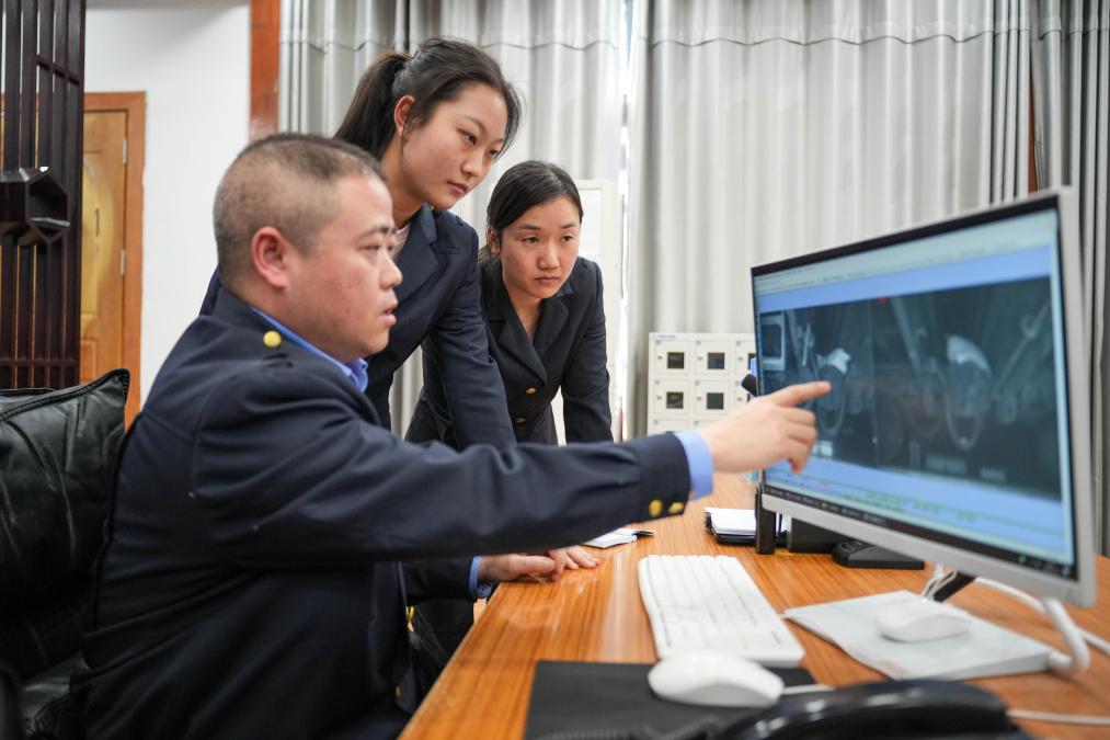 2月18日,檢車員在貴陽南車輛段5T運用車間探討分析車輛隱患圖像。