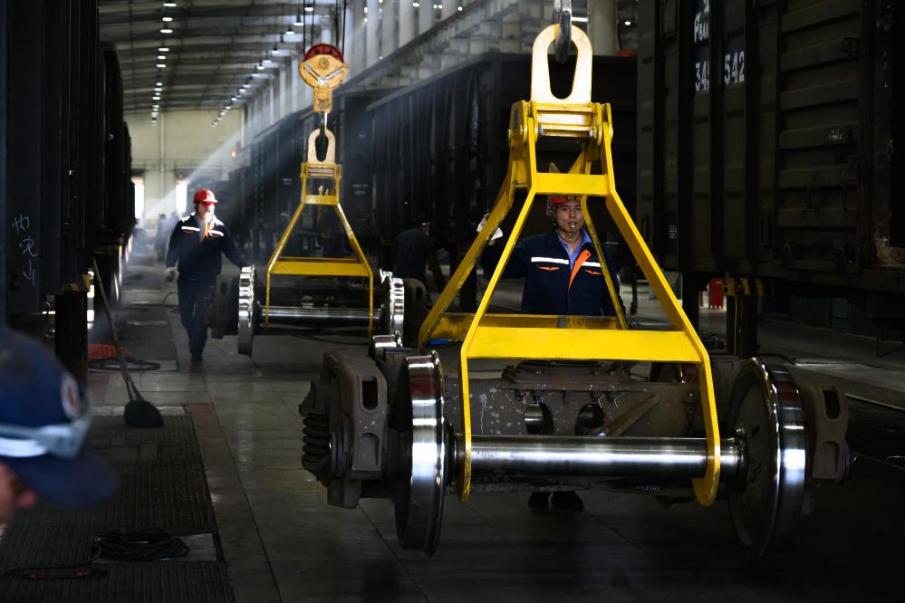 2月18日,在貴陽南車輛段檢修車間,工作人員對5T車間發現的車輛故障進行維修。