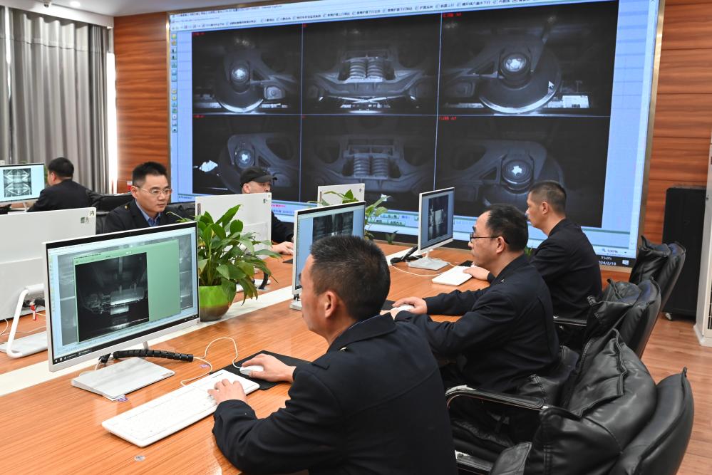 在中國鐵路成都局集團有限公司貴陽南車輛段5T運用車間,鐵路貨車運行故障動態圖像監測系統對通過鐵軌線路的列車進行高速攝像,圖片信息傳回地面分析中心後,再由動態檢車員查找研判列車故障和安全隱患。5T檢車員們在春運期間每天要對約300列貨車進行檢測,查看約90萬張照片,默默守護春運安全。