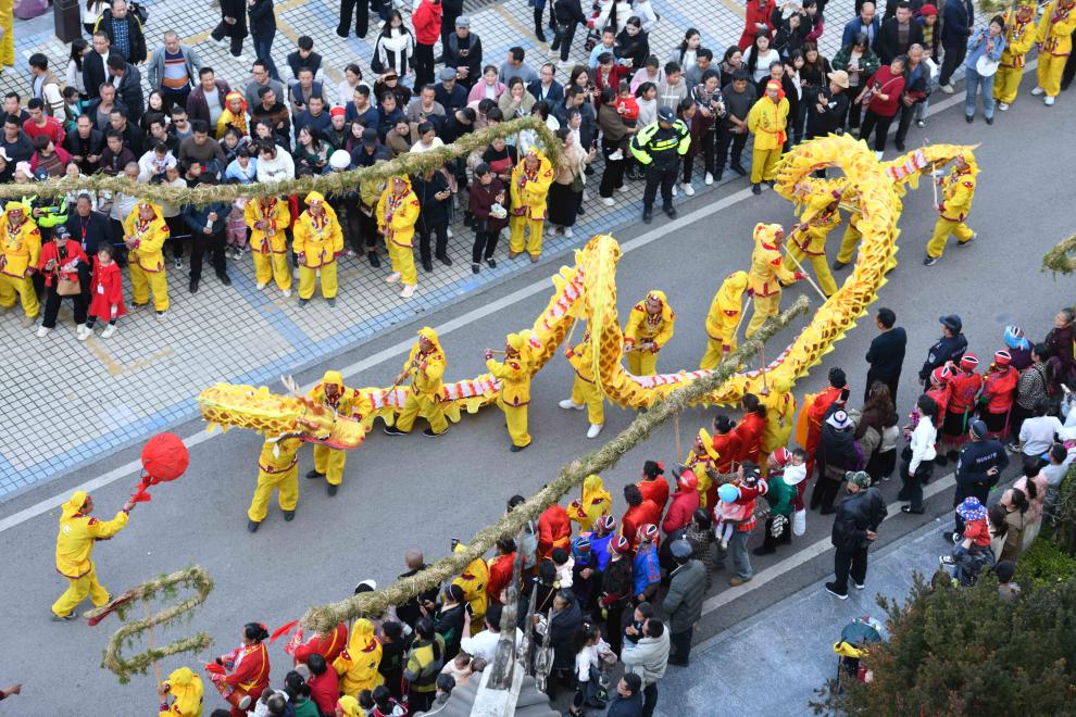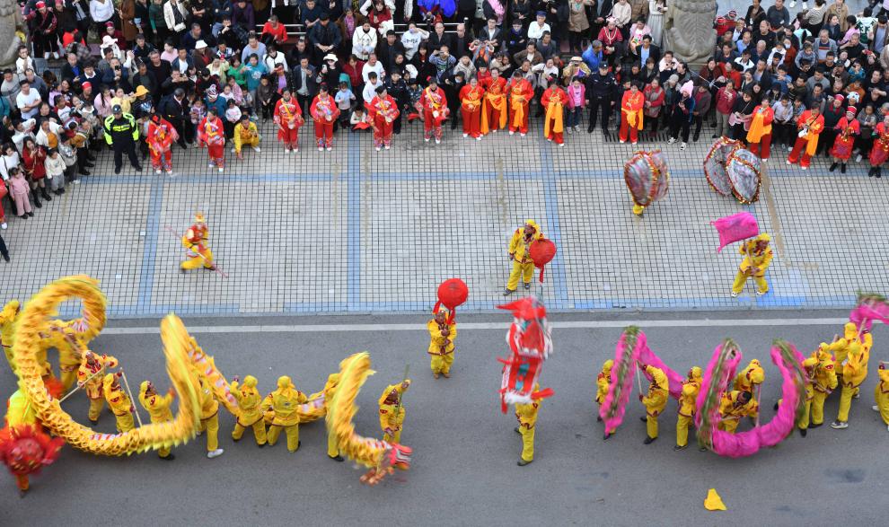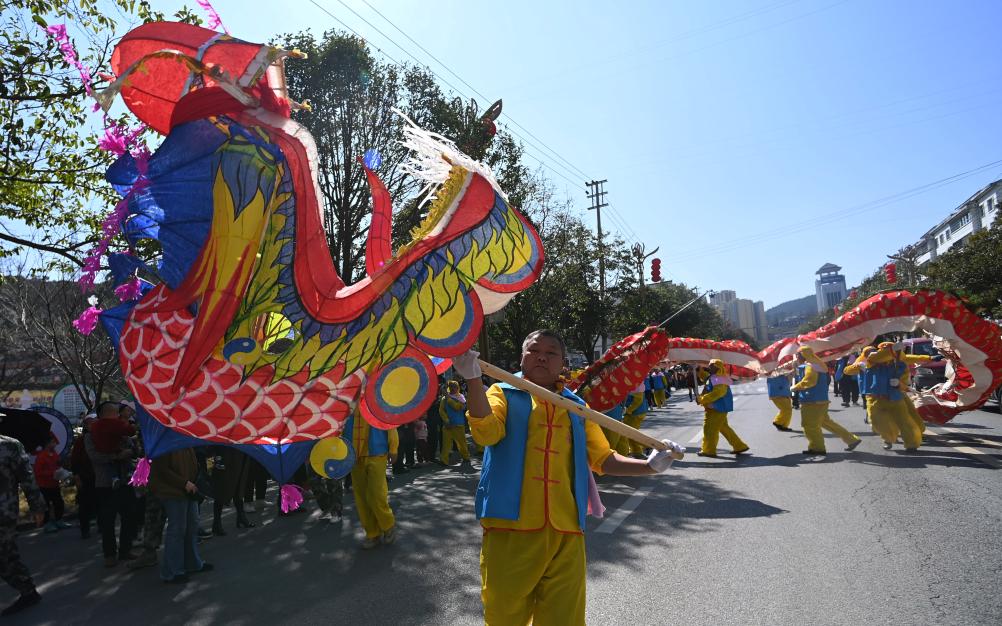 2月18日,貴州省黔東南苗族侗族自治州黃平縣各鄉鎮群眾身着盛裝,歡聚一堂,舉行舞龍、花燈、舞獅、巡游等傳統民俗活動,祈盼新的一年風調雨順、五穀豐登。據悉,每年農曆正月初九,是黃平縣傳統龍燈會亮燈的日子,活動將持續到元宵節。