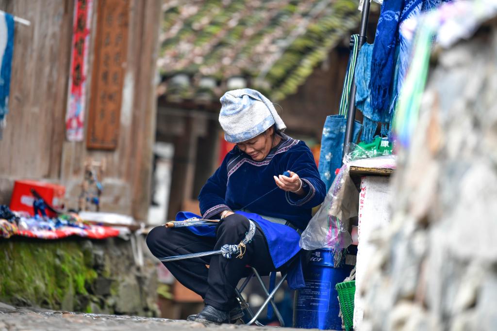 3月18日,貴州省榕江縣栽麻鎮大利侗寨的村民在刺繡。