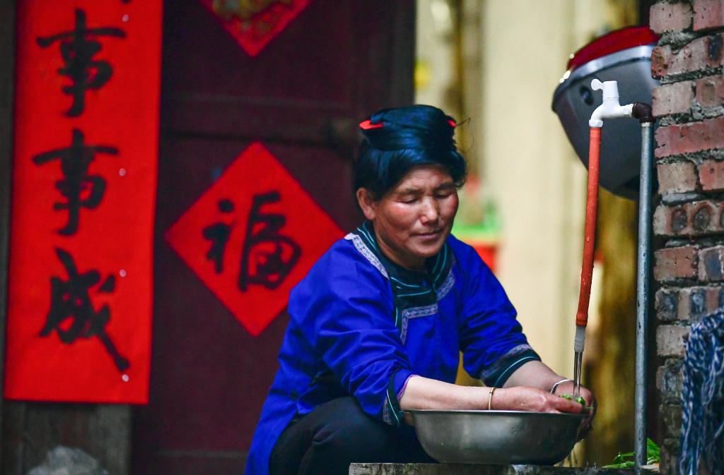 3月17日,貴州省榕江縣栽麻鎮大利侗寨的村民使用自來水洗菜。