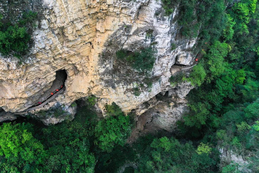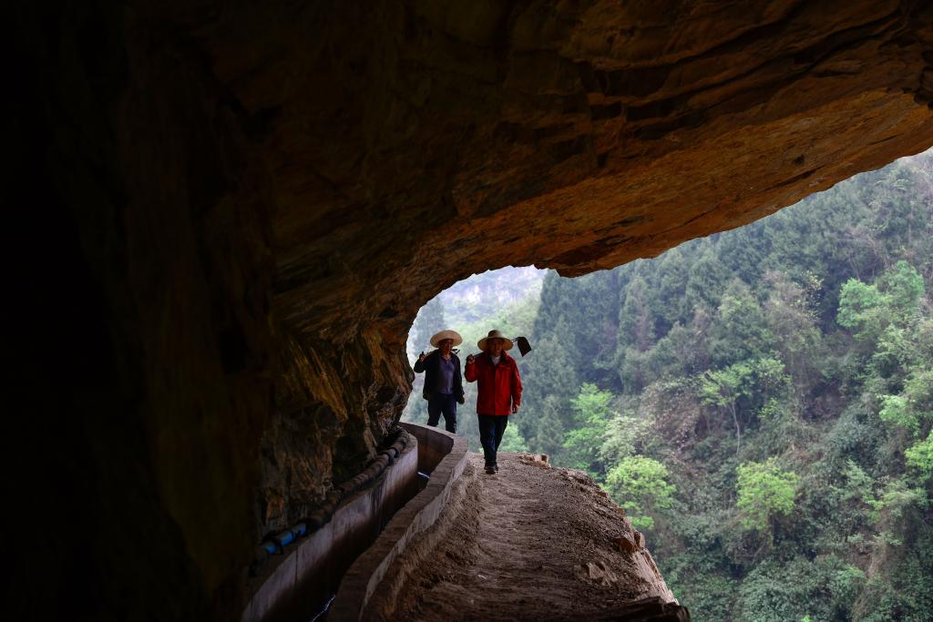 護渠隊員在畢節市七星關區生機鎮巡護高流天渠途中(2024年4月24日攝)。