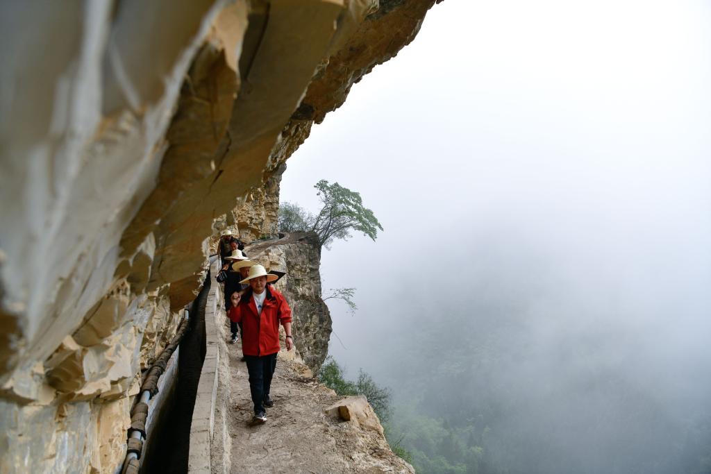 20世紀60年代,村民在查看修建的絕壁天渠。 1958年春天