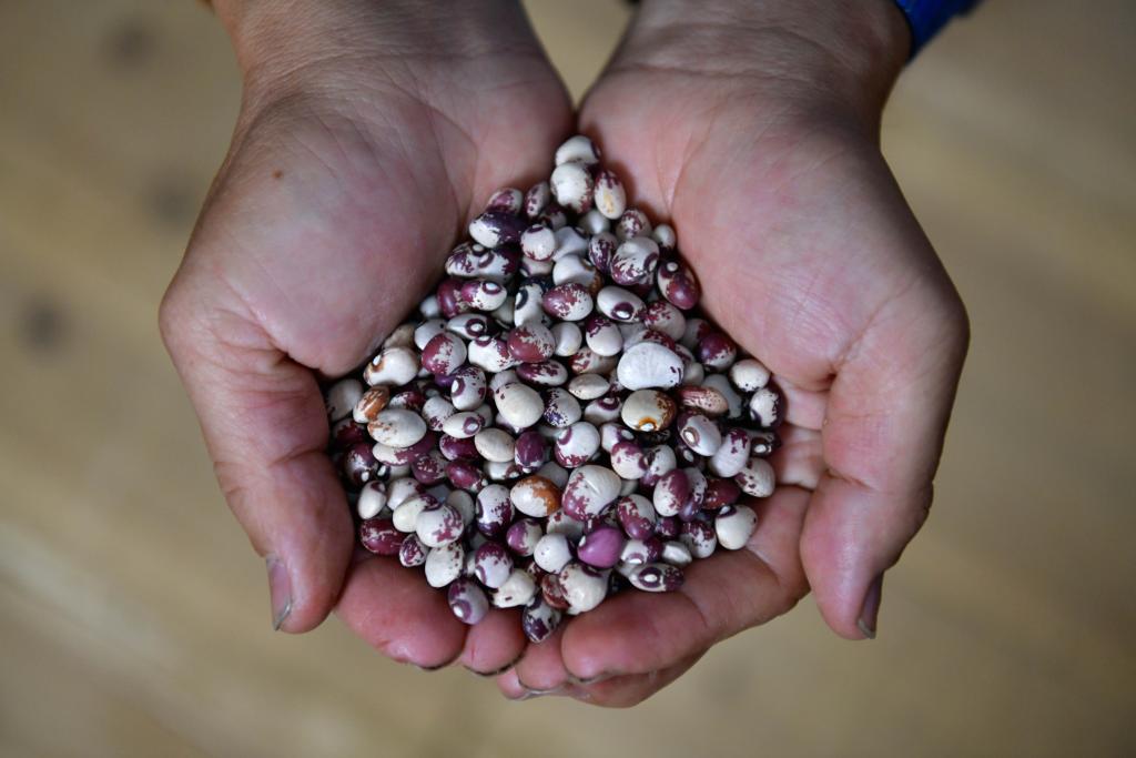 這是楊正熙在位於貴州省黎平縣尚重鎮洋洞村的種子博物館裏保存的花豆種子(5月18日攝)。
