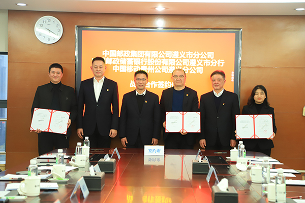 1月8日,中國移動通信集團貴州省移動通信公司遵義市分公司(以下簡稱“遵義移動”)與郵政公司遵義市分公司、郵儲銀行遵義市分行簽署全面戰略合作協議。