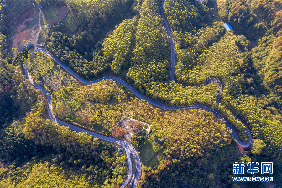 11月24日,貴州省從江縣高增鄉四寨河口至佔裏旅游公路兩旁五彩斑斕,成為一道美麗的風景線(無人機照片)。