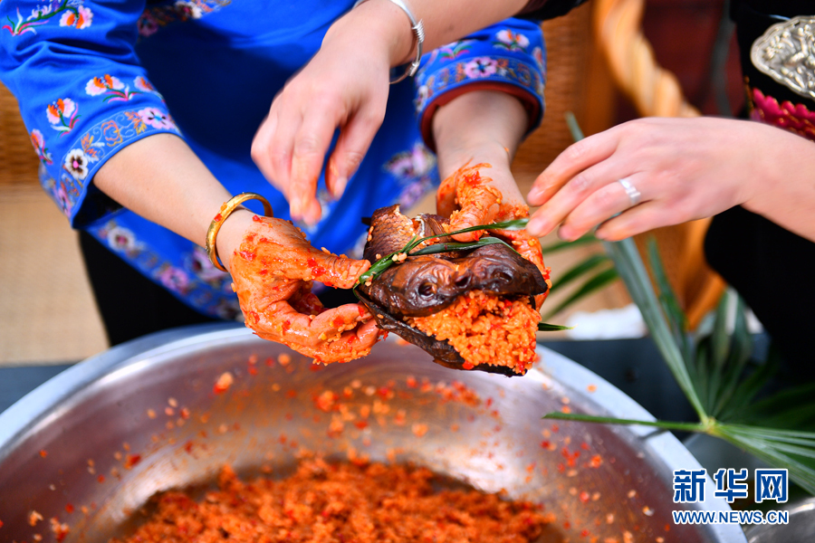 貴州省黔東南苗族侗族自治州&江縣老屯鄉報效村,村民在製作腌魚(11月28日攝)。新華網發(歐陽光林 攝)