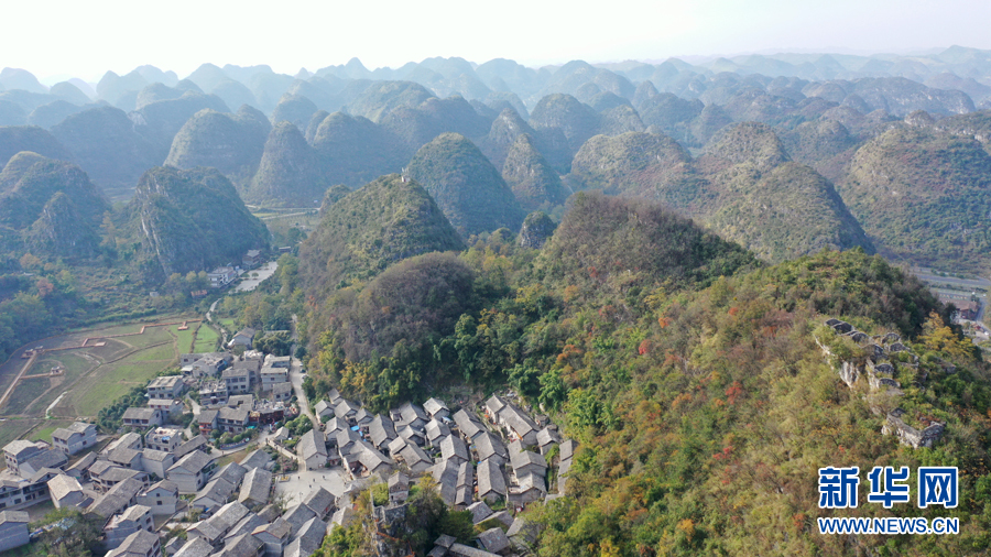 12月1日航拍的貴州安順市鎮寧縣高蕩村一景。
