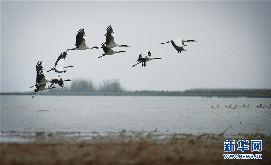 12月7日在威寧草海拍攝的黑頸鶴。新華網 盧志佳 攝