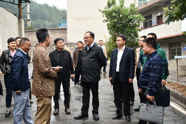2021年10月13日,黔東南州委常委、市委書記王鎮義(中)到金泰工業廢渣綜合利用回收有限公司走訪,為企業辦實事。李靖 攝