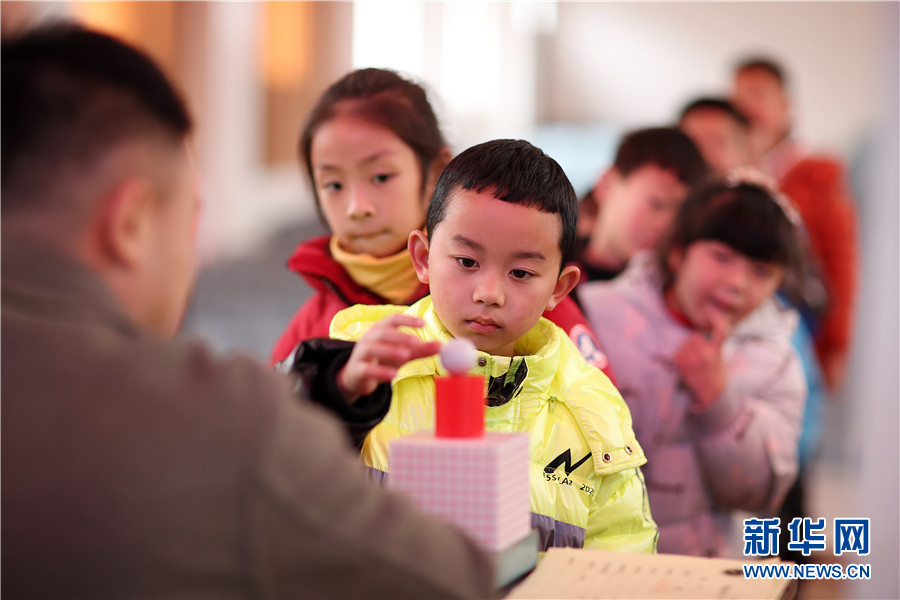 1月10日,在貴州省丹寨縣城關第一小學,一名小學生參加認識圖形測試。新華網發(黃曉海 攝)