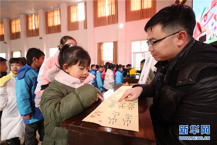 1月10日,在貴州省丹寨縣城關第一小學,一年級小學生參加口算能力測試。新華網發(黃曉海 攝)