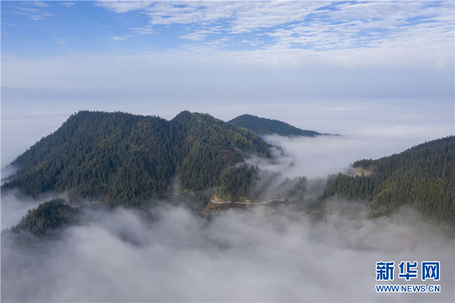 1月19日,在貴州省從江縣高增鄉天鵝山拍攝的雲海景觀(無人機照片)。新華網發(吳德軍 攝)