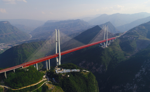 無人機航拍的貴州北盤江大橋。新華網 盧志佳 攝