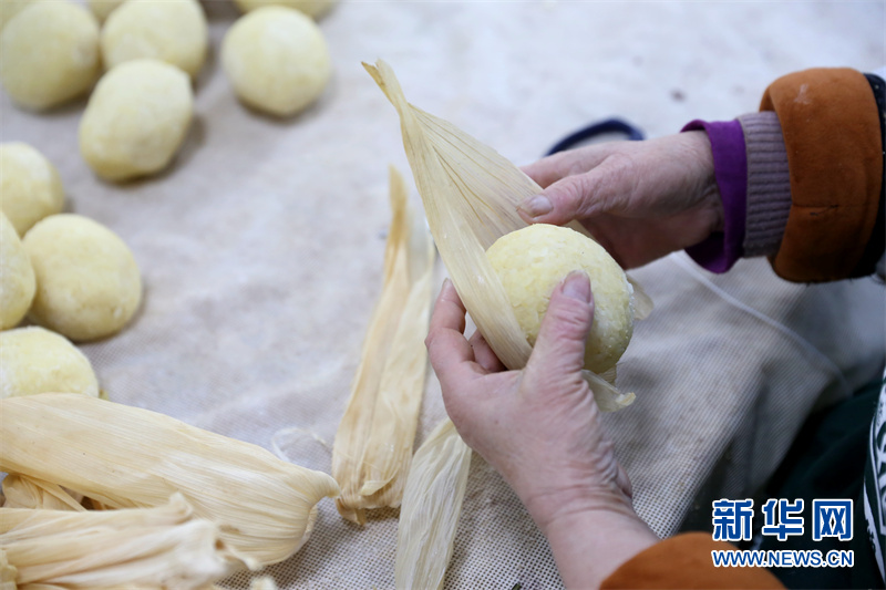 2月23日,貴州省畢節市一家食品廠的工人在製作黃粑。新華網 周遠鋼 攝