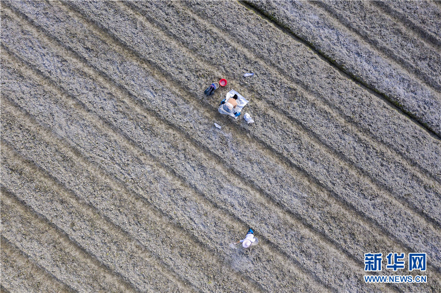 2月27日,在貴州省從江縣貫洞鎮宰門村,村民在地裏勞作(無人機照片)。新華網發(吳德軍 攝)