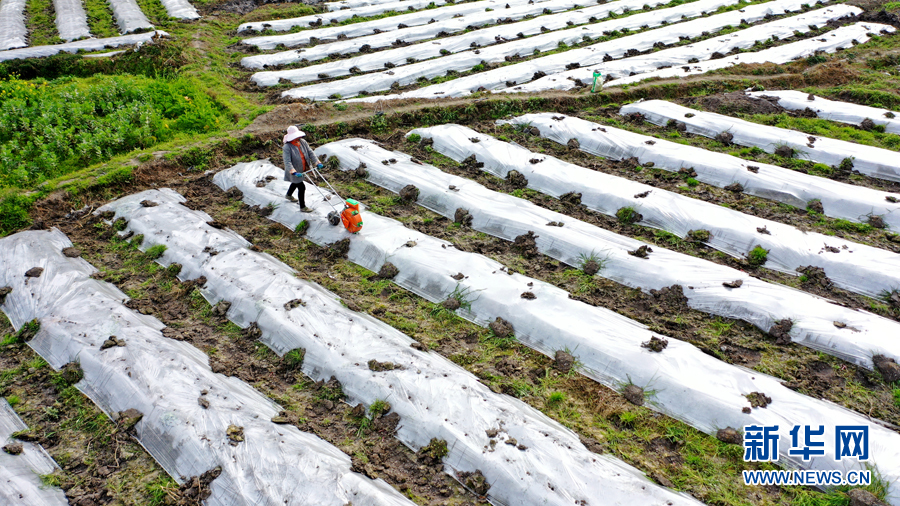 3月6日,貴州平塘縣通州鎮丹平村村民在地裏播種。新華網 周遠鋼 攝