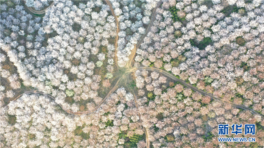 3月19日航拍的貴州安順市西秀區黃臘鄉櫻花園。新華網 周遠鋼 攝