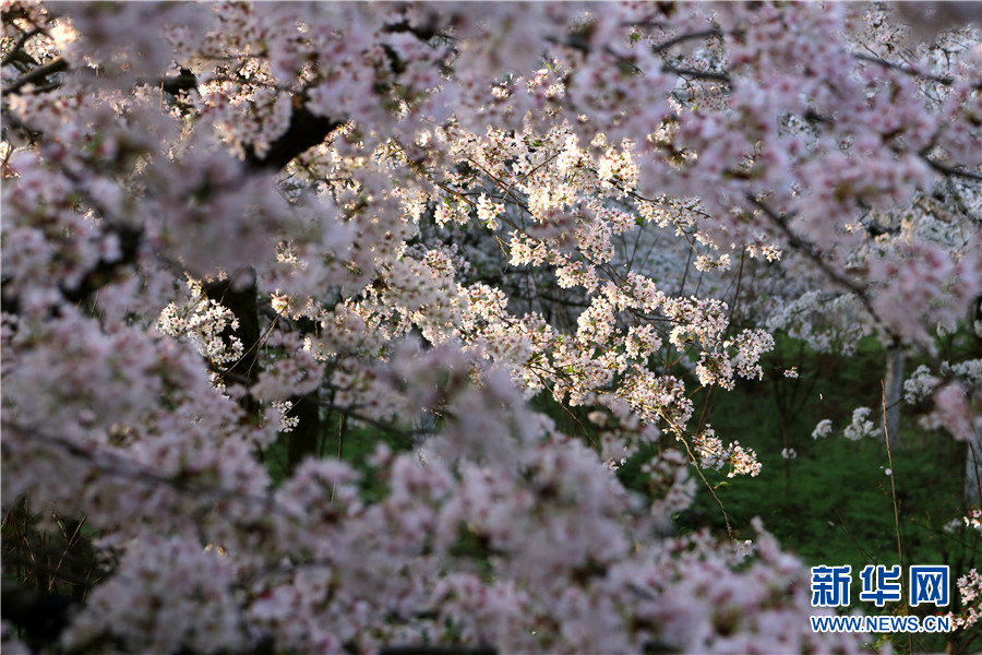 3月19日拍攝的西秀區黃臘鄉櫻花園裏綻放的櫻花。新華網 周遠鋼 攝