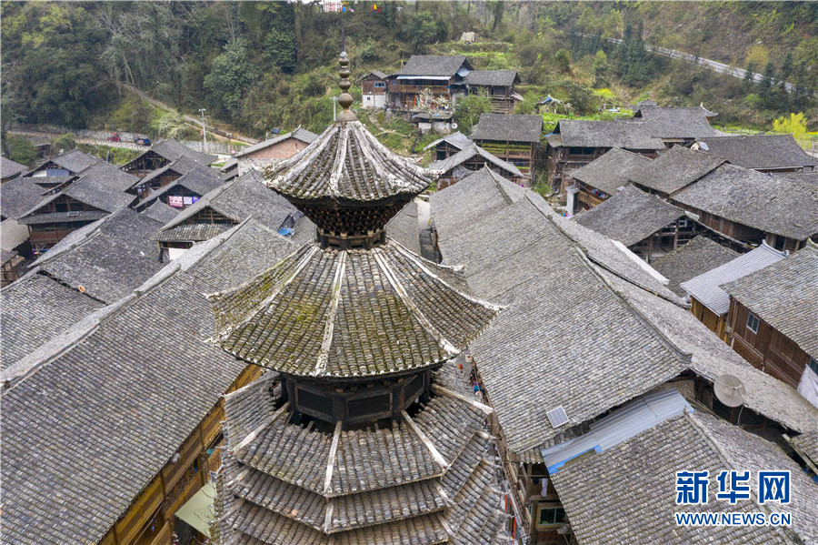 3月16日拍攝的貴州省從江縣往洞鎮增衝村(無人機照片)。新華網發(吳德軍 攝)