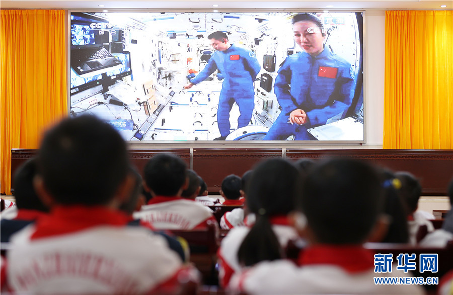 3月23日,小學生在貴州省黔東南苗族侗族自治州丹寨縣城關第二小學觀看“天宮課堂”電視直播。新華網發(黃曉海 攝)