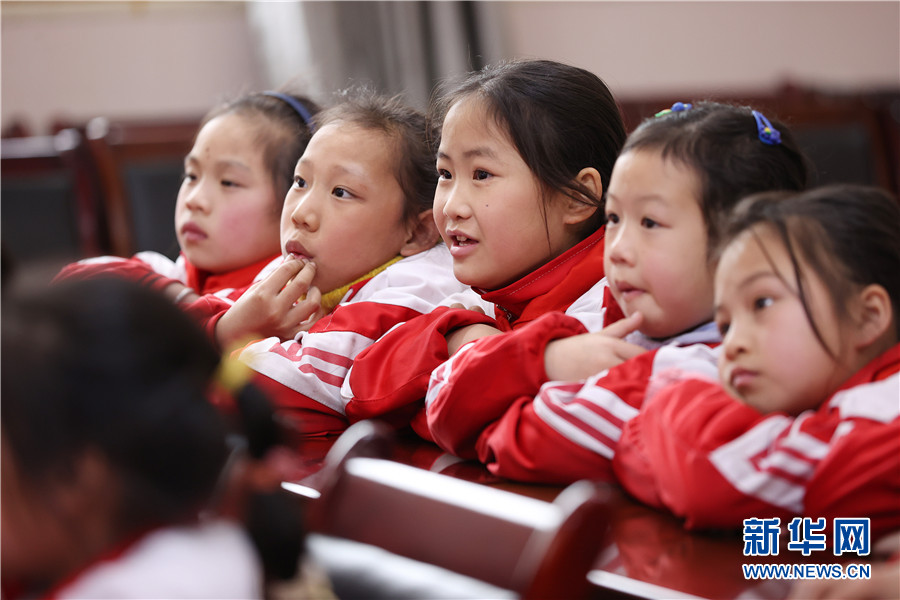3月23日,小學生在貴州省黔東南苗族侗族自治州丹寨縣城關第二小學觀看“天宮課堂”電視直播。新華網發(黃曉海 攝)