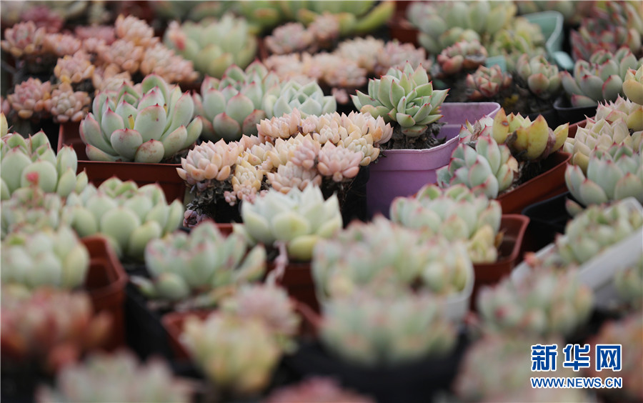 3月25日拍攝的貴州省畢節市黔西市林泉鎮大棚裏種植的多肉植物。新華網 盧志佳 攝