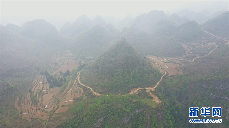 圖為3月29日航拍的普安縣白沙鄉的一個烤煙基地。新華網 周遠鋼 攝