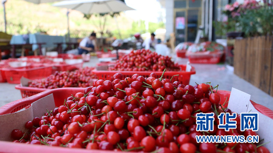 大方縣貓場鎮五丫村的瑪瑙紅櫻桃。新華網 周遠鋼 攝